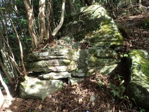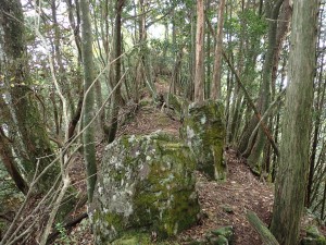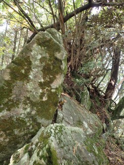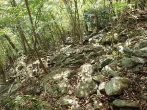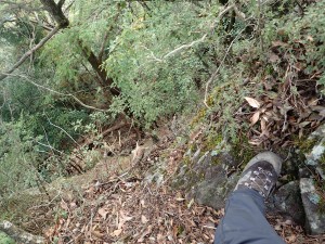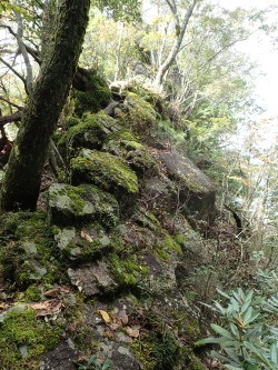 | ヤセ尾根が続く | 足の置き場に悩む場所もある | 巨石が立ちはだかって狭い場所もある |