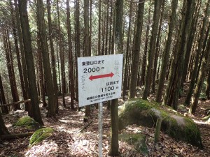 | 850.0mのピークから右の尾根を行く | 案内板があった | 大牟田山が見えた |