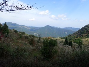 | ▲縦走路の開けた場所からの遠望(経読岳や雁股山、檜原山が見渡せる。手前右端は大牟田山の斜面) | ||