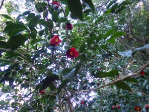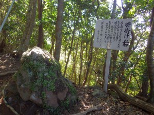 | 露岩を登(10:45)る | ツバキが咲いていた | 腰掛岩とある・・・説明を読むとちょっと怖い(10:49) |