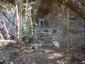 | 手の絵が彫られている(11:01) | 岩壁の下を通過 | ロープを補助に |