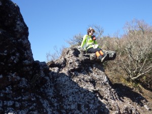 | 大パノラマが広がる | 奇岩に座ってみた | しばらく絶景に見とれる(北側) |