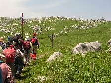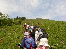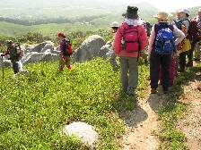 左手に大平山をみて貫山への道をとります。塔ケ峰との分岐でもあります。下りきると中峠との分岐があります。ここから今回一番の難所ののぼりです。3回ほど一息つきピークにでます。平坦な道を行き、突き当たると四方台です。左(北)に進むと貫山です。ここからは稜線歩きです。気持ちの良い風を受けながらゆっくりと進みます。左手(東側)下には広谷湿原が見えてきます。Yさんの平尾台の成り立ちの説明がありました。花崗岩と石灰岩がなぜあるのかも知りました。中峠で車道との分岐を右に進み、すぐに脇道を南に下ります。しばらく歩くと舗装道に出て茶ケ床園地(ちゃがとこえんち)です。トイレ休憩をして食事をした場所(散策路の表示あり)より西へ行きます。散策路が終わり林の中を抜けると民家にでます。路地を歩き、出発地点の自然観察センターに到着です。 <最後に> とにかく今回は勉強になりました。自然のすごさ、大切さ・・・・ また、初めての花々にも出会え、平尾台の素晴らしさを改めて感じました。 それと平尾台は「火気厳禁です。」お恥ずかしい話、本日まで知りませんでした。 今回出合った花々(閲覧は制限させていただきました) |