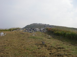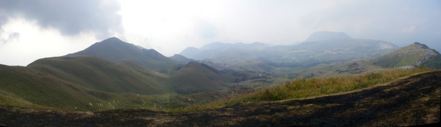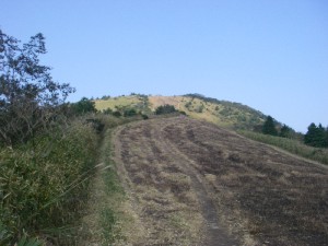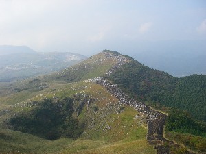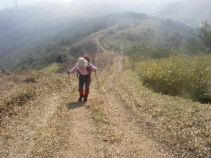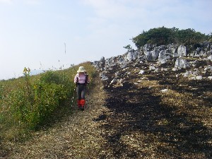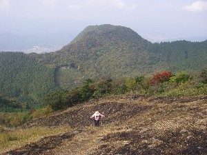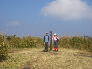 2010年11月7日 天気 曇り時々晴れ 紅葉の秋ではあるが、10月5日に手術をして以来山に行っていない。山に行っていないどころか運動を全くしていない。ようやく下腹部も落ち着いてきたのでそろそろ山を歩こうと言う事で家内を誘って近場の平尾台へ。吹上峠の駐車場は、いつもより空いていて、この時期は登山者が少ないことを感じる。まずは大平山(おおへらやま)を目指す。よく子どもを連れてきたルートである。野焼きの跡で登山道は広々している。急登を無理せず、ジグザクに登り、霞んだ空の中、遠望を楽しむ。下界は雲海に似た景色で名づけて「プチ雲海」。急登が終わると南にパノラマが広がり、ススキの穂が秋を感じさせてくれて秋の平尾台も捨てたものではないと思う。緩やかな上りには、ピナクルが見えてきてその間を歩いて行く。いつのまにかピークらしい場所でおそらくご夫婦のお二人が休憩が終わったようで出発しようとしていた。大平山頂上である。一休みしてすぐに出発する。少し降り、茶ケ床園地からの合流地点を過ぎ、左(北)に塔ケ峰を見て急な坂を降る。降りきるとここからはお花畑でリンドウやムラサキセンブリ、ウメバチソウとこの時期でも沢山の花々を咲かせ楽しませてくれた。小穴と大穴の分岐を過ぎるとこのルート一番の長い急登となる。何度も立ち止まり、振り返って景色を楽しむ間に呼吸を整える。急登が終わると南側の景色を楽しみすぐに四方台の標識を見る。霞んだ周防灘を正面に見て北へと進路をとり、貫山を目指す。東側の斜面はいつのまにか植林されていてたくさんあったムラサキセンブリの花が見あたらない。植林は何のためか、考えさせられる。緩やかな下り気味の道はすぐに終わり、柵を出て再び急登となる。一気に登り詰めるとすぐに貫山頂上である。途中で前を行くご夫妻を追い越してしまったので、山頂には私たちだけであった。しかし、すぐに後ろから6人程度のパーティが来て写真を頼まれた。ちょっと早いがここで食事をすることに。今日はおにぎりとインスタント味噌汁である。下山は往路と考えていたが、ちょっと遠回りをすることに。貫山を柵のところまで降り、左(西)の林道を歩くことにした。少しは紅葉があるのでは期待して。のんびりと歩いていると山芋のツルにムカゴを発見する。舗装された道はやはり疲れるが、家内と喋りながら歩いたのであっという間に分岐に着いた。(左に舗装されていない分かれ道、そのままカーブを進むと塔ケ峰への取り付き地点)ここで前方からカップルが、「大穴はどこですか?」と聞かれる。確かに大穴はすぐ右手であるが、ここからは見渡せない。分岐から南へと歩いて行くと「小穴・中峠」と標識があるので入り込むと登山道となる。周りは笹などに覆われていて眺めはない。しばらくすると朝歩いてきた縦走路に飛び出る。ここからは往路であるが、また花々が見られ、和やかな気分で歩ける。大平山を過ぎ、いよいよ最後の下り坂に差し掛かったところで、正面から登ってくる登山者がいた。なんと「がしん」さんである。本当に良くお会いする。駐車場に着いたのは午後2時だった。のんびりとリハビリをした。 |