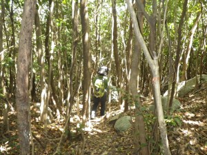 | 樹林帯を歩く | マムシグサが多い | 塔ケ峯への上り |