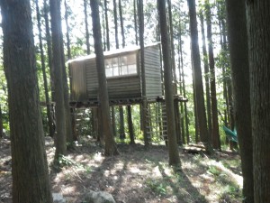 | ここで一服 | 樹林帯に入る | 手作りのログハウス |