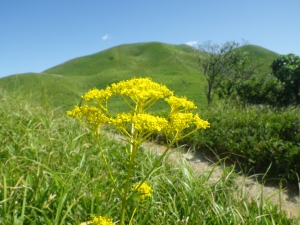 2013年9月16日(祝日) 天気 晴れ ■出発時間:午前13時00分(自宅) ■メンバー:家内と私の2人 久しぶりの土曜日に休みをとり、連休で鹿児島、宮崎の山に登ってきた。そして今日は月曜日の祝日だが、義母が病院なので三連休とはいかなく、見送りをした。しかし、晴天なのに家に閉じこもるのはかなりつらい。痺れを切らしてしまい、こんなときは近くて便利な平尾台だ!と言うことで今日もいつもの平尾台を歩くことになった。まだ、昨日までの片付けも終わらないのに・・・・・ まだ、日中は暑いが、朝晩の涼しさには、秋が近づくのを感じる今日この頃である。平尾台は年中花が咲いていると思ってしまうほど私の中では花の宝庫である。 今日は「秋の七草」というテーマにしてみた。 秋の七草は万葉集で山上憶良(やまのうえのおくら)が選定したようで 「秋の野に咲きたる花を指折り(およびをり)かき数ふれば 七種(ななくさ)の花、萩の花、尾花葛花、撫子の花、女郎花 また藤袴、朝貌(あさがお)の花」 「朝顔の花」は桔梗と認識されているようで わかりやすくカタカナにすると ハギ、キキョウ、ススキ、クズ、オミナエシ、フジカマ、ナデシコ ナデシコは少々時期が過ぎてしまったが、後は全て花が咲いていました。 平尾台ってやっぱり良いよねぇ〜 |