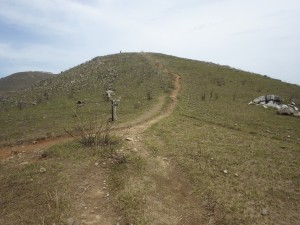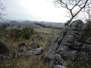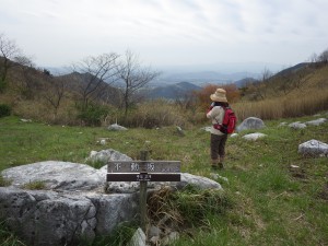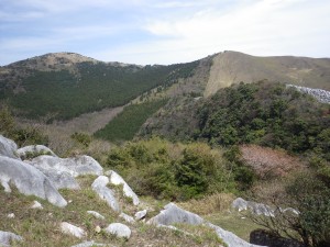 | 中峠(11:50) | 野焼きの終わった道は炭が着くので注意 | 権現山や周防台を背に |