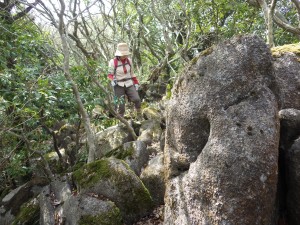 | 急斜面を慎重に降る | 大穴との分岐点(12:34) | 漫画に出てくるような奇岩 |
