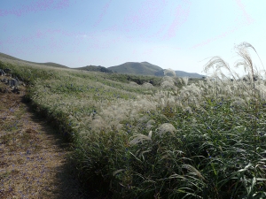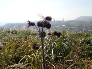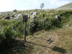 | 背の高さもあるススキ | キス岩への分岐を通過 | ヒメヒゴタイの花が何とか残ってくれていた |