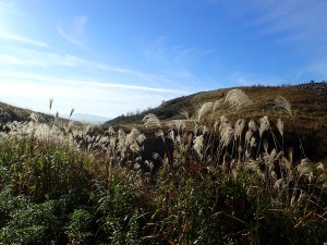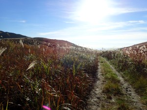 | 農道を歩く | ススキがきれいだ | 不動坂との分岐(9:00) |