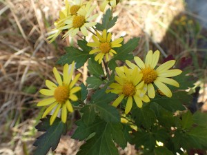 | 真っすぐ東へと入り込む | 正面には天狗岩(左) | キク科の花が咲いている |