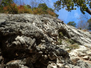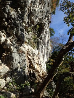平成28年12月3日(土) 天気 晴れ ■出発時間:8時頃(自宅) ■メンバー:単独 今年もあっという間に師走がやってきた。アタック山の会の忘年登山は平尾台の予定。 そして忘年会は公民館をお借りして一泊する計画である。 「忘年登山」と言うことなのだが、平尾台はメンバー全員が飽きるほど歩いているかもしれない。そこで今日は下見をしてルートを模索することに。 月初めの土曜日ではあるが、何かあっても近場なので何とかなるだろう。 こんなに天気が良いのに勿体ないではないか・・・・。 さて 自然観察センターの駐車場を出発しようとしたら「さこちゃんご夫妻」に偶然お会いする。お二人ともお元気そうで何よりだ。 駐車場から農道を歩いて不動坂の道標のある四差路を真っすぐに進むと不動洞に行ける。道は落ち葉が積もり過ぎて歩きにくい。水の音で沢に近づいたことを知る。小さな滝が見えて割れた石の階段を上がると千仏不動尊である。一息ついて石段を下り、沢に出ると上部に口を開けたように不動洞がある。10年ほど前に初めてケイビングを体験した場所である。(確か、胸辺りまで水に浸かった記憶がある) 沢を横断してやや不明瞭な道をロープを辿って進むと目の前に岩壁が立ちはだかる。 千仏ロックである。手軽にクライミングが楽しめる場所だ。ただ、観光シーズンは遠慮してほしいと注意書きがある。 樹林帯の中を時折紅葉した樹々をみて進むとコンクリートの道に出て左に上ってゆくと千仏鍾乳洞の入り口に着く。ここで反対から登山スタイルのグループとすれ違う。どうやら逆コースのようだ。しばらく茶店で紅葉を眺めながら休憩する。 ここから一旦車道に出て貝殻山を越えて天狗岩を目指す。ちょうど谷を挟んで反対側を戻るように山腹を歩く。樹林帯を抜けると小さな沢があったりして日本アルプスを歩いている気分になる。次ページへ |