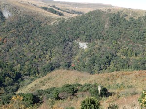 | 反対からの道との合流点 | 白い部分が千仏ロック | 遠くに竜ケ鼻 |