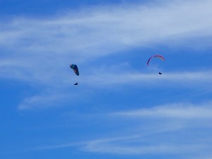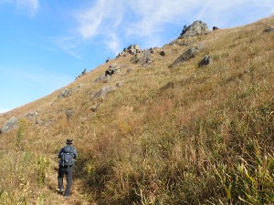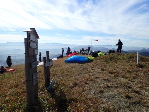 | 山頂目指す | 桶ケ辻(10:46) | パラグライダーを楽しむ人たちで賑わっている |