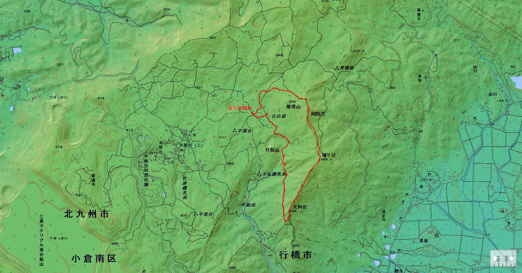 平尾台登山コース(GPSによる歩行軌跡)