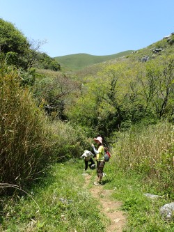 平成29年5月3日(水) 憲法記念日 天気 晴れ ■出発時間:9時頃(自宅) ■メンバー:家内と次女の3.人 連休は、長男と長女家族が滞在する予定なので山に行けない。 せめて今日は、夕方まで平尾台でも歩こうと試しに次女を誘う。そして・・・何と16年ぶりに山に一緒に行くことになる。 前日にバタバタと準備したが何とか着るものも靴も家内のものを共有することができたようだ。 いつものように観察センターから歩きはじめ、シランの花を見て不動山で展望を楽しむ。 茶ケ床園地では、信ちゃんご夫妻にお会いし、パトロール中の同級生F氏にも出会う。 当然ながら自然を楽しもうとたくさんの人が来ている。 広谷湿原から鬼の唐手岩へ行く途中の滝に娘は感動していた。鬼の唐手岩では一人でクライミングを楽しんでいるベテラン?さんがいた。ここで展望を楽しみながらランチタイム。 中峠から旧牧道を歩いていると再び信ちゃんご夫妻と出会う。またどこかで再会を楽しみにお別れをする。小穴の横を通過し、お花畑を歩く。今は花は少ないけどこれから色々と賑わってくることであろう。 キス岩に立ち寄り、私のお気に入りの場所から観察センターへと戻った。時計を見ると15時を過ぎていた。出発が遅かったこともあるが、久しぶりにのんびりとした山歩きであった。夕方全員集まるのでBBQのための食材を仕入れ帰宅する。 今日も山に自然に友人に娘に感謝!! ※距離10.2km、標高差185m、全行程で約5時間でした。 |