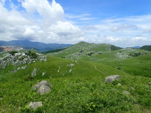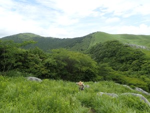 平成29年7月2日(日) 天気 晴れ ■出発時間:8時頃(自宅) ■メンバー:家内と二人 貴重ともいえる梅雨晴れの日、諸事情で遠方に行けず、平尾台で済ませる。 何だか、夕食をお茶漬けで済ませるみたいな表現になったが、ま、そのようなものかも知れない。そう言えば先月は英彦山を歩いただけで何だかかんだと山に行けなかった。 少々運動不足なのでどうしても今日は歩きたかった。 平尾台は、毎週のように違った花が次々に開花する。 茶ケ床園地からノハナショウブを見に広谷湿原へ向かう。車道を歩いているとパトロールの車が反対からやってきた。もしやと思いフロントガラス越の顔をよく見るとやっぱり同級生のF君だ。声をかけると車を降りてしばらく話し込む。 F君は、平尾台観察センターの職員である。数年前に長く勤めた会社を退職し、この仕事に就いた。羨ましい気もする。 広谷湿原で花を楽しんで四方台の端で早めの昼食をとる。陽射しは強いが、風が心地よい。 四方台から急斜面を降る。もう時期ここはキキョウの花園になる。 急斜面が終わると四差路を突き抜け、所謂お花畑に突入する。今はカキランとオカトラノオ、ウツボグサがたくさんある。 なだらかな斜面を登り切って少し降ると今度は急斜面を登る。きついが今日のコース最後の上りなので気は楽である。 登り切ると大平山との分岐から茶ケ床園地へと降る。短いコースであったが、久しぶりの山歩きをした家内は結構疲れたようである。 今日も自然に友人に感謝!! |