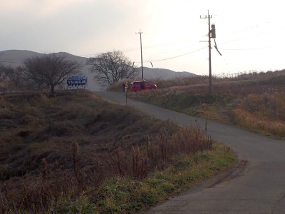| 観察センタを出発(8:52) | 消防署の車が停まっている。そこを左に | 不動坂へ(9:05) |