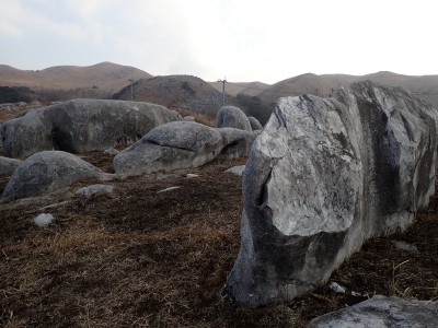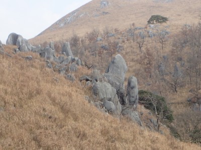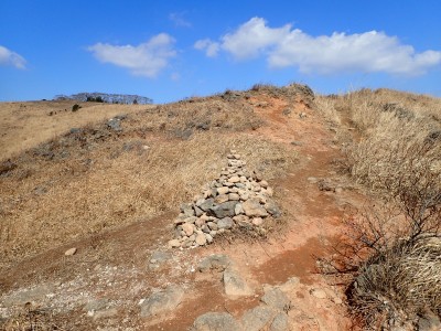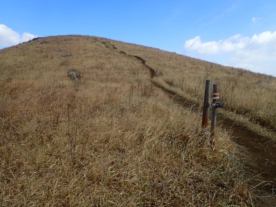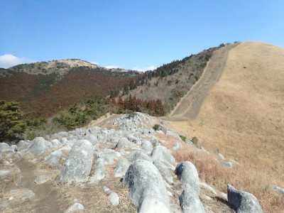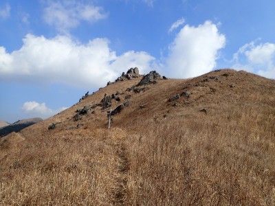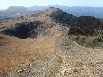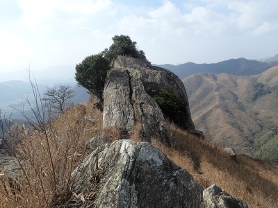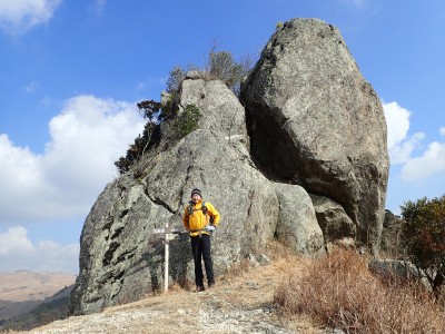 平成31年2月17日(日) 天気 曇り時々晴れ ■出発時間:8時15分頃(自宅) ■メンバー:単独 今日は北九州マラソンの日であるので知り合いでも参加しているならば応援に出かけるところだが、今年も縁がない。 「山でも行こう」と近くで便利な平尾台、そして貫山。 正直、この季節は、花がないので面白くないが、ま、運動と思って少々長めに歩くことにした。 午前8時40分、観察センターの駐車場は、まるで平日のように車がない。 これはマラソンのせいだろうか、それとも野焼きで立入禁止?? とにかく準備して歩き出す。いつものように岨畑(今は耕されて種まきを待っているよう)から不動坂へと農道を歩く。 不動洞との分岐から登山道となり、不動山、堂金山とこの先歩く天狗岩や桶ケ辻の稜線を眺めながら歩く。 一旦車道に出て貝殻山を登り切る。空はどんよりとしてすっきりしない。 貝殻山を降って桶ケ辻の稜線の山腹を戻るように歩く。杉林から竹林を抜けると陽射しを空は青く視界には建造物が全くなく、いかにも山奥に来たという錯覚を起こす。私にはアルプスにも似た感じがして気分はとても良い。 稜線の突端まで来るとつらい登りが始まる。巨石を目指してゆくと天狗岩だ。とにかく存在感がある。 再び急登をしてパラグライダーの聖地である桶ケ辻に着く。風は相変わらず強い。 稜線をのんびり歩いていると反対から一人歩いてきた。本日初めて会う登山者だ。 周防台の先から一気に降って中峠。そこから貫山への道。今日は脱いだり着たりと体温調整が大変だ。 中峠から貫山までは、さすがに他の登山者が多く、すれ違う。時間的に下山してくる人も多いのだろう。 苦しい坂を登り切って貫山頂上に着く。既に何組かランチタイムを過ごしていた。 空を見上げる真っ青で気持ちよいが、遠くの視界はやっぱり霞んでいる。 途中のコンビニで買ってきたミニカップうどんとおにぎりを食べ、最後に珈琲を淹れる。周りではガスでラーメンを作ったり何か料理をする人が多い。単独で来ていた若い女の子もジェットボイル(mon-bell製)を出して何か作り出した。 私にとっては不思議な光景でもあり、喜ばしく思う反面、不安な気持ちを持ってしまう。 さて山頂から往路を四方台まで戻り、大平山方面へ四方台の肩から急降下する。この急坂は以前より歩きにくくなった気がする。小穴のある四差路はそのまま真っ直ぐに進み、春から秋まで絶え間なく花を咲かせる場所は、今は花はない。 登り切って再び小さなドリーネの手前からカヤの中を掻き分けてベンチのある道へ行き、そこでしばらく休憩。 そして遊歩道を抜け、いつものお気に入りの場所でまたまた休憩。好きなときに好きなだけ休憩できるのは単独行の良いところだ。 無事観察センターへ着いたのは、既に 時だった。今日も自然に山に感謝!! ■コースタイム 観察センター-(20分)-不動山-(25分)-貝殻山-(30分)-天狗岩-(20分)-桶ケ辻-(15分)-周防台-(15分)-中峠-(23分)-四方台-(18分)-貫山-(25分)-四差路-(45分)-観察センター※休憩時間は含めず。全行程で5時間でした。距離11.7km標高差347m |