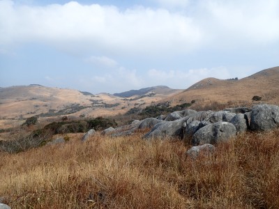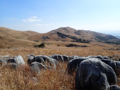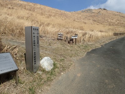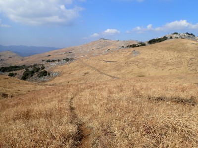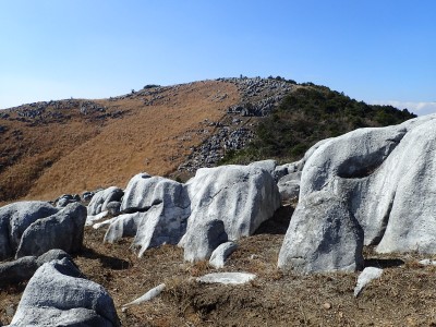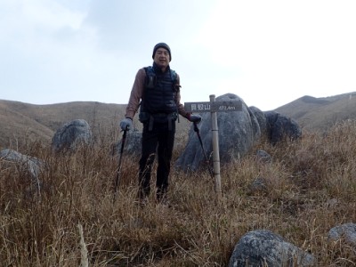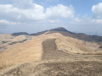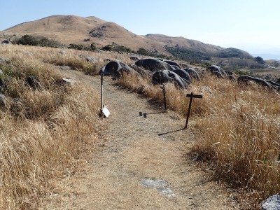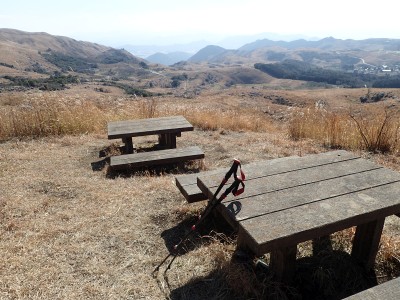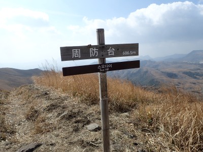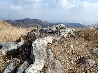 | 平尾台自然の郷などが見える(桶ケ辻より) | 周防台 606.5m (10:49) | 奥が貫山 |