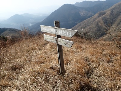 | 貝殻山 472.4m (9:38) | 遠くに貫山が見える | これから歩く稜線 |