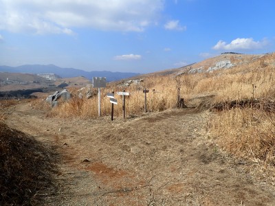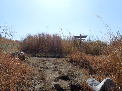 | 四差路(12:46) | 振り返る、左が貫山 | お花畑は今は花がない |
