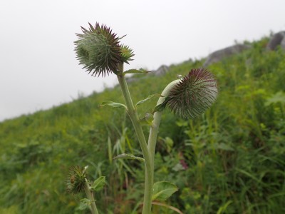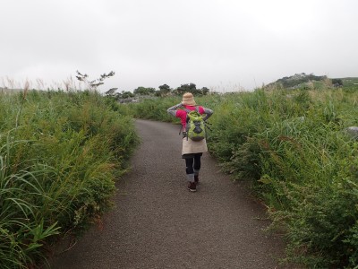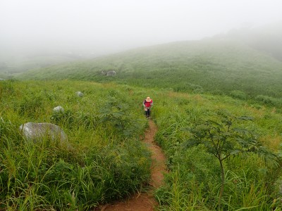 令和1年9月7日(土) 天気 晴れ ■出発時間:7時15分頃(自宅) ■メンバー:2名(家内と私) 猛暑が続く中、今夕は娘夫婦と娘婿のご両親と6年ぶりの再会で食事をする予定だ。 そのため明日の日曜日は、娘夫婦が滞在するため天候が良さそうだが山は諦める。 となると今日は午前中だけでも歩きたいとなる。午前中だけ歩けるところと言うとやっぱり平尾台。 家内を誘い、散歩がてら歩くことに 茶ケ床園地に着くといつもなら混雑している駐車場も今朝は空いている。時間が早いせいか、それとも天候のせいか・・・・・周辺はガスっていて雨でも降りそうな天気だ。 まずは、中峠まで舗装道を歩く。花にカメラを向けている一人の女性に挨拶をする。 中峠から散策道に入り、四方台への稜線歩きを楽しむ、風が強いが心地よい。夏の花々はまだまだたくさんあって心も和む。 独りの時よりも、ゆっくりじっくりと歩く。家内は私が気づかなかった花を見つけたりする。 今日はガスで景色をあまり楽しめない、その分、花を楽しもう。 四方台の手前のケルンより降る。小穴が見えると平坦な道をのんびりと歩く。散策路に出て砂利道へ向かう途中で7〜8人のグループとすれ違う。これから散策するようだ。天候が回復することを願って私たちは茶ケ床園地に無事到着。約2時間の散歩だったが、ストレス解消にもなり、今夜のお酒がきっとうまいだろう。 今日も自然に山に感謝!! |