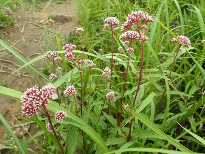 | 中峠へ | ナンバンギセル(南蛮煙管)ハマウツボ科 | サワヒドリ(沢鵯)キク科 |