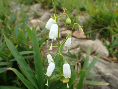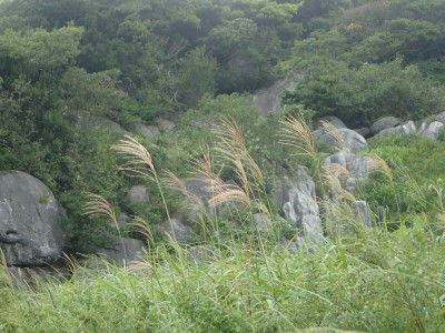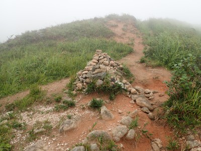 | ススキが秋を感じさせる | ガスに覆われて視界は悪い | 白花を見つけた |