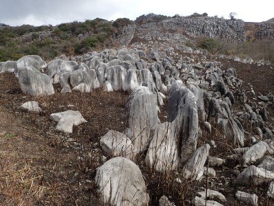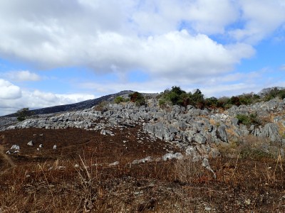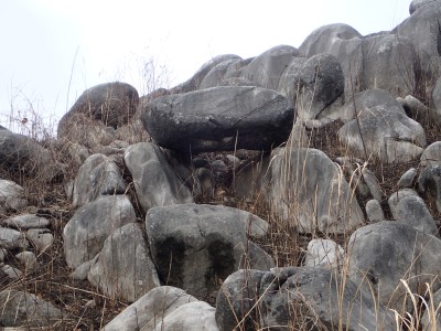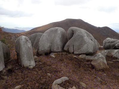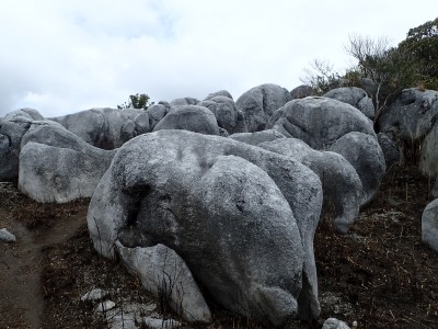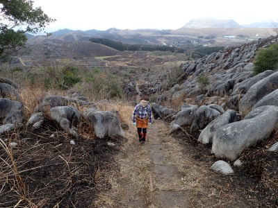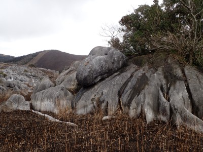 | 野焼き後で草がない | 今にも転がりそう | 面白い岩が多い |