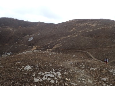 | これから急登 | ドリーネの底がよく見える | きつい坂をこれから登る |