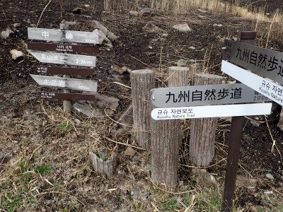 令和2年3月8日(日) 天気 曇り ■出発時間:9時頃(自宅) ■メンバー:2名(家内と私) 少し濃いめの灰色の雲が、貫山の頂上を流れている。予報では好天になるはずなので家内と平尾台でも歩こうと昨夜話していた。 雨模様であるが予報を信じて遅い出発。平尾台への連続カーブをジグザグに高度を上げて車を走らせる。 吹上峠に出ると駐車場はどうも混雑しているようだ。観察センターの駐車場も結構満車。千仏鍾乳洞への道は走っている人が大勢いる。もしかして今日はトレランの大会なのかと思いながら茶ケ床園地の駐車場まで来る。 ところが満車で目白洞への道端に駐車している。私たちは少しバックして路肩に停める。ちょうどパトロールの車が来たので聞いてみると大会などなくてどうも新型コロナウィルスの影響で平尾台のような解放された自然の場所に人気が出たようである。 茶ケ床園地から歩き始めるが野焼きが終わったばかりで石灰石の羊群が隠れる場所がなく姿を現している。いつもの緑は黒く焼け焦げていて羊群の食べる餌がないようにも見える。 いつもと違う光景を目にしながらいつもの道を歩く。四差路まで来るとたくさんの人が急斜面を登ろうとしている。私たちは、先行を行く人たちとは別の道筋を行く。落石を防ぐためだ。 息をあげながら登り切ると四方台に到着。風が強いので休憩をせずに中峠への稜線を進む。 オキナグサの自生地まで来るとその手前より岩山へと降って上り返す。 岩山の広い場所でランチタイムを過ごす。のんびりとして気持ち良い。気温は低いようで熱い淹れ立ての珈琲はすぐにぬるくなる。ランチを終えて中峠経由で茶ケ床園地へ。多くの人とすれ違う。目白洞のおじさんから声をかけられた。久しぶりにお会いする。コヒーを出していたが今もやってるかと聞くと10年ほど前にやめたそうだ。今日は花も緑もなく寂しいはずだが、人で賑やかな平尾台であった。今日も自然に山に感謝!! |