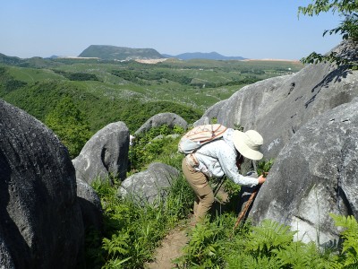 降りきると奇岩と窪みは湿原 |