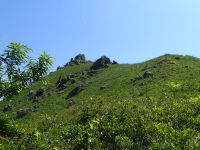 これから行く天狗岩が見える |