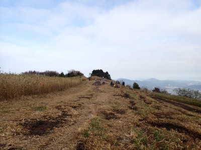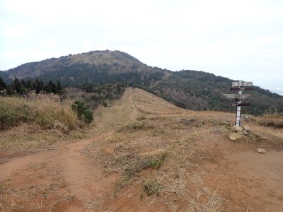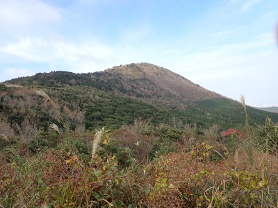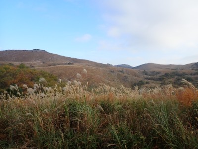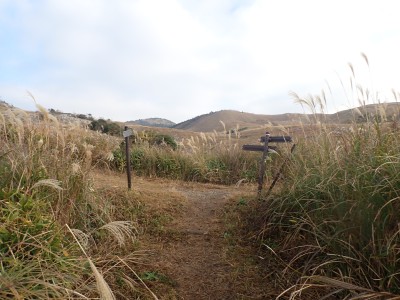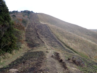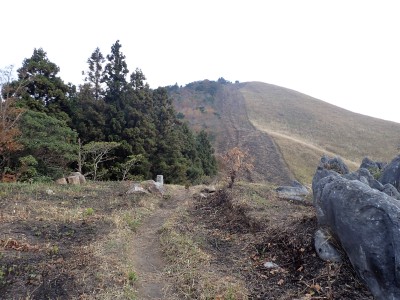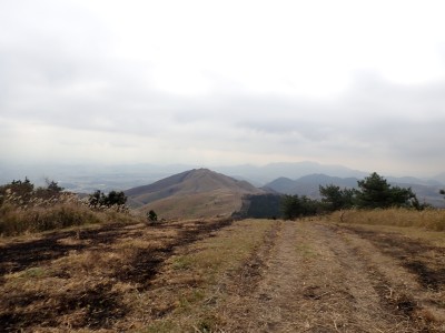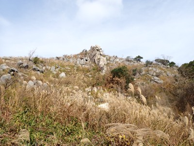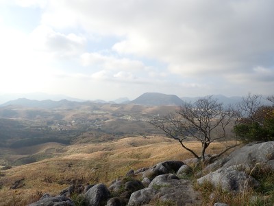 今日は山の会の新メンバーであるお二人と平尾台を歩く。この時期の平尾台はもちろん花はないだろう。そして野焼きも行われているので不動山や周防台のルートは外した。そしてやはり初めての人には鬼の唐手岩にぜひ案内したい。と言うことで観察センターの駐車場から歩く。学校や民家を抜け森に入り、いつものお気に入りの場所から大平山(おおへらやま)や貫山を指さしてこれから歩くルートを説明する。まずは大平山を目指す。勾配がきつくなったら時折振り返り、眺めを楽しむ。どんよりとした空を大平山の頂上から眺める。そして往路を少し戻り、今度は貫山へ。急降下して少し登ると春から夏にかけお花畑となる場所、今は野焼きされて花はない。四差路から今度は急斜面。ため息をつくメンバー。やがてため息をつく暇も無く荒い息になる。何度か立ち止まって息を整え、登り切る。周防台、桶ヶ辻の稜線を眺めて四方台。貫山を正面にして進む。そして山頂直下の急勾配。「きついね」と言いながら登り切る。初心者のMさんもがんばって登頂。頂上からの眺めを見てどう感じたろうか、と尋ねて見たいところだが・・・・・。ま、言うまでもないだろう。