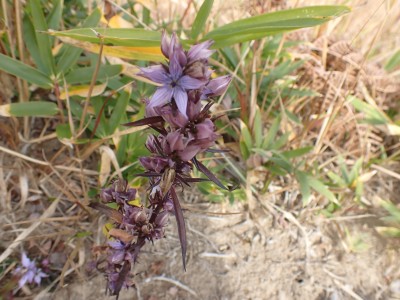 ここからはもうきつい場所はない、貫山頂上から往路を戻り林道終点から藪に入り込み、水晶山方面へと進む。林野火災殉職者の慰霊碑に立ち寄り手を合わせる。ここからの貫山はとてもやさしい感じがするのは私だけであろうか。一旦車道に出て再び登山道に入り広谷台、そして鬼の唐手岩に着く。陽射しは強くなり風がなければ暑い。岩の日陰でランチタイムとする。岩になれていないMさんも恐る恐る岩上に。きっとすぐに慣れることであろう。ランチタイムを終えると滝不動を見て種をつけた湿原の植物たちを見て中峠、茶ヶ床園地へと。パトロール中のF氏にやっぱり遭遇して立ち話をして無事観察センター駐車場に着く。万歩計は17000歩となっていた。意外と歩いたことで達成感はあったのでは?でもきっと一番楽しかったのは自分だろう。今日も自然に山友に感謝!! |