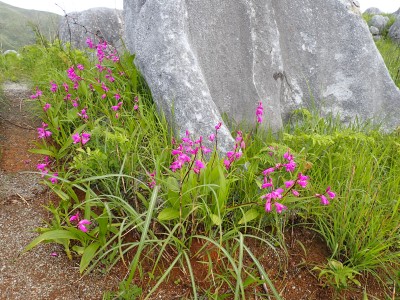 | ヤマサギソウ(山鷺草)ラン科 | ちょっと拡大 | ヒメハギ(姫萩)ヒメハギ科 |