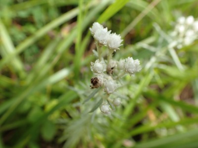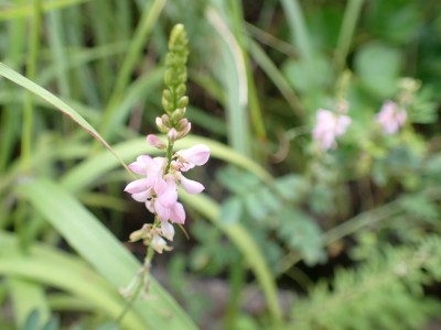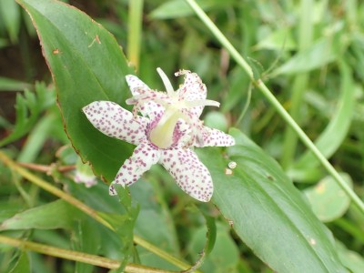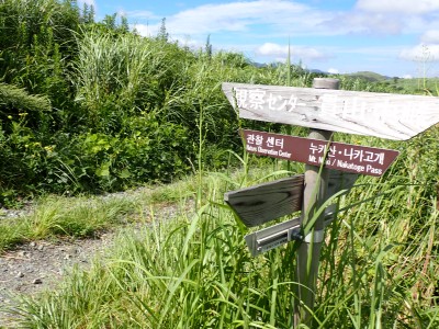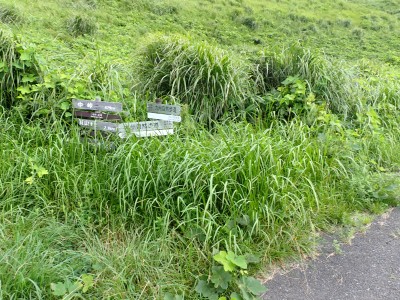 岩山から鞍部まで戻り山腹を左回りに進むが、これまた胸の高さまで草が多い茂っている。Wストックはこのような時にとても力を発揮してくれる。両手で草を払いながら足下を確かめて歩けるからだ。つまずくこともなく無事脱出。しかし陽射しは強く焼けるような暑さが待っていた。キッス岩の道標を見て散策道を抜け、農道の砂利道に出ると茶ヶ床園地に戻り、再び散策道の森の中を戻り駐車場に到着。いやー暑かったが花はたくさん見れてしかもサギソウが咲いていてくれて本当に良かった。観察センターさん、『盗掘されないようにしっかりパトロールしてくださいね』と手を合わせる。今日も自然に山に感謝!!