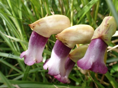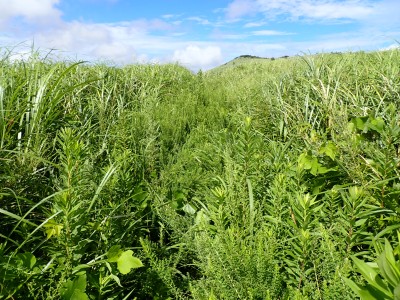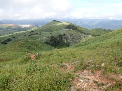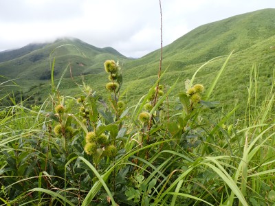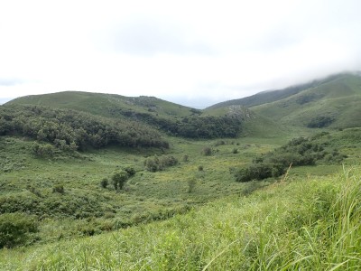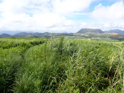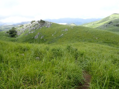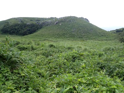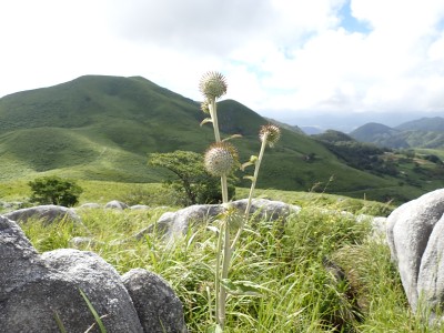 観察センター前の駐車場は、さすがにガラガラ。まずは「お気に入りの場所」でモーニングだ。コーヒーはホットでもまだ涼しいので飲める。さて今日はどのルートで行くか・・・・。考えた末、この時期は草が伸びきって歩きにくいし、朝露でずぶ濡れになることも。そこでひとまず茶ヶ床園地から広谷湿原へと歩き、四方台へと歩くことにした。朝食を済ませて茶ヶ床園地へ行くと既に駐車場はほぼ満車状態。朝一で山に登ったりトレランしたりする人が多いのだろう。広谷湿原の先から四方台へと山道を歩く。今年はあちこちでナンバンギセルがお辞儀をしている。この植物は寄生植物であるが万葉集にも「思い草」として登場しているらしいから古くから日本に自生していることがわかる。四方台の側まで来て稜線に出ると南へと進む。稜線では東の海風が吹いてとても涼しく快適だ。途中から岩山目指し西へと降る。鞍部から岩山へはちょっとだけ登り返す。本日のピークである。名の通り、石灰岩が露出した山だ。南の先端に行くとその岩はテーブル状に広がっていてここで何度か休憩したことを思いだす。