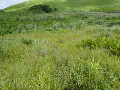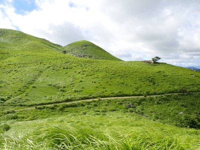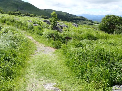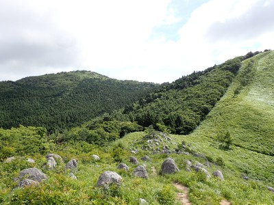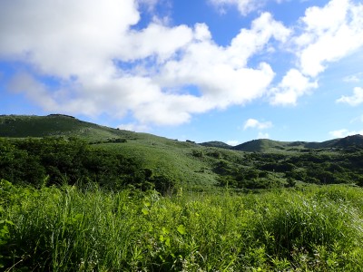 梅雨だからしょうがないが、6月は1度しか山に行っていない。そのため体が錆びたように動きが悪いのを感じる。今日は七夕だが、特に我家では特別な日ではない。朝5時起床すると準備をして我家を出発。玄関を出るとムーとして暑い。車に乗ると外気温は既に29℃。途中で朝食を仕入れて午前7時に観察センター前駐車場に着く。車を降りるとやはり涼しい。車の外気温表示は26℃、たかが3℃でこんなに違うものかと感心しながら歩き始める。お気に入りの場所で朝食だ。青空の下、大平山から貫山へと広がるパノラマを眺めながらのんびりと至福のひとときだ。さて今日はどう歩こうかと考えていると一人一眼レフカメラを手にした同年代くらいの人から声をかけられた。「カッコウはどの辺りにいるかご存じですか?」と聞かれたのでドリーネで良く鳴き声を聞きますねと答えて少し会話をした。カッコウやホトトギスも鳴き声は良く聞くが、なかなか姿を見せてくれないので写真が撮れたらきっと感動するだろうなと思った。さて今日はあくまでも散歩だ。ピークを目指すことはない。茶ヶ床園地から広谷湿原へ。少なくなった菖蒲は花が終わりを迎えていた。中峠に戻り、小穴に回り込み四差路から大平山方面へと歩く。今日は花が少ないが、もうしばらくするとオニユリやノヒメユリなど派手な花々で賑やかになるはずだ。大平山手前から散策路へと降る。途中で信ちゃんご夫妻ににお会いする。久しぶりにお会いするが変わらず元気なお二人だ。私のお気に入りの場所でお別れして駐車場に戻る。車は満車状態。。午前中の3時間程度の山歩きだったが、久しぶりなので意外に体力を消耗した感じがした。来週はどこを歩こうか考えながら帰宅した。今日も自然に山に感謝!! |