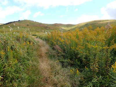『うぅさむぅ』車から降りると思わず声に出た。見上げると空は冬模様。ポツポツと雨が降り出したのでスマホで雨雲レーダを見たが雨雲は見当たらない。予報は「曇り時々晴れ」となっている。雨具を着るほどではないが、薄手のウィンドパーカだけではとても寒いので、その上から雨具を着ることにした。そうこうしていると車が続々と狭い駐車場に入ってくる。今日のお目当てはセンブリとウメバチソウだ。中峠から四方台を目指す。そして貫山を目指すが、今日はその手前で林道を歩くことにした。鬱蒼とした道は、以前よりも荒れた感じで暗い。樹木が成長して陽射しを遮っているせいだろうか、ツル科の植物がほとんど消えていた。もちろん「山芋」もだ。この林道の途中から貫山頂上への道があるはずだが、それらしい目印があったが以前と変わっていて明確でない。目の前から男性が1名現れた。思わず「珍しいですね、この道を歩くとは」と声をかけると初めて歩くとのことだった。「熊は出ないと思うけど気をつけて」と心の中でつぶやいた。四差路に出て小穴を見ながら中峠に戻り茶ケ床園地へと舗装道を歩く。そして思わぬ出合い。メンバーのHさんが一人で歩いてくるではないか。せっかくなので「ウメバチソウのたくさんある場所へご案内」と言うことで再び四方台方面へ。花々を見て楽しんで四方台の肩でのんびりと絶景を眺めながらランチをしているとこれまた偶然、念仏坂(仮称)を登り切って現れた登山者が何とYさんだった。Hさんは思わず立ち上がってYさんとハグをして出合いに喜んでいた。何年も会ってない家族のように。私も仲間に加わりたかったくらい嬉しいのが不思議だ。ランチを終え、今度はYさんに花々を楽しんでもらい茶ヶ床園地に戻った。HさんとYさんは観察センターへ降った。茶ヶ床園地の駐車場は満車で次から次へと車が来るので出られなくなってしまい、見かねた人が交通整理をしてくれて無事脱出。感謝です。観察センター駐車場着くとYさんと合流。公共交通機関で来たYさんを私の車に乗せて途中でお別れ。目的の花々に出会えた上に、思わぬ偶然の出合いに感激する今日の平尾台だった。今日も自然に山に仲間に感謝!! |
