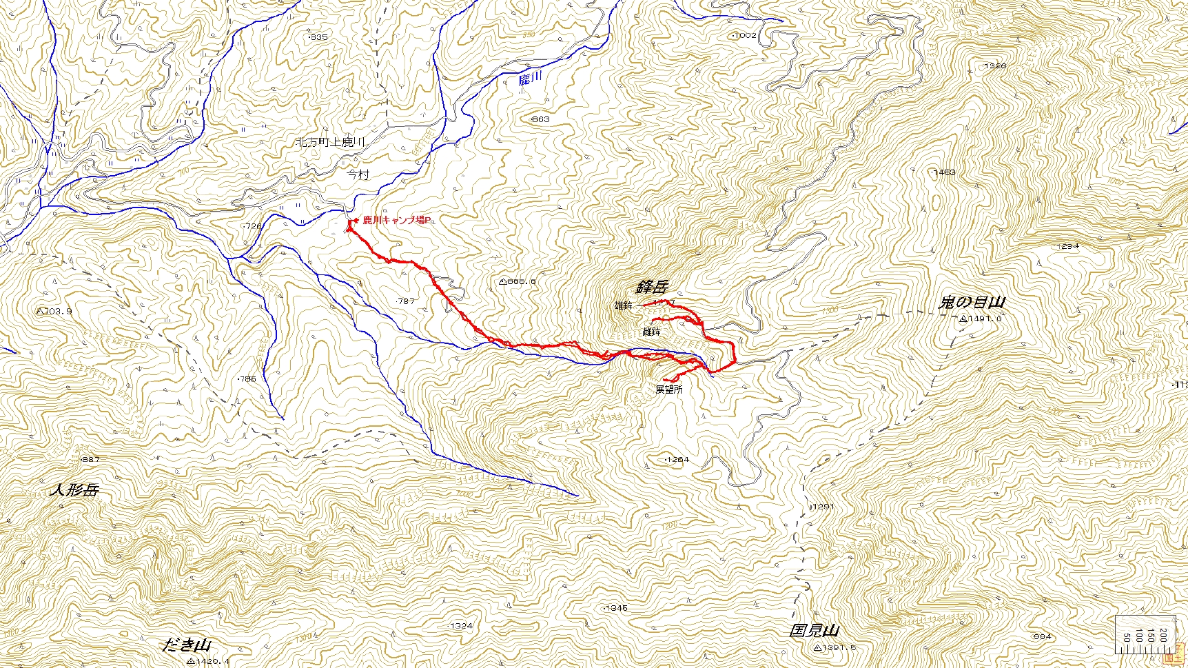 鉾岳登山コース(GPSによる歩行軌跡)