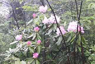 | ミツバツツジを背景に・・・・やっぱり似合わない | 天然かどうかは?ご存知シャクナゲ | |