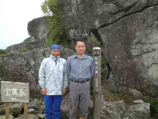 | その岩の前で記念撮影(高校生の2人ありがとう) | 三合目あたりからの展望 | |