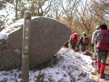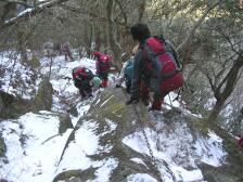 | 山頂で集合写真 | 羅漢道めぐりへ | 危険な岩場 |