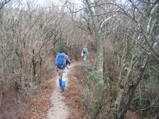帰路は長崎鼻の先まで往路をとります。長崎鼻より約10分程度尾根を歩くと「普池の窟・金の水」と書かれた小さな標識があるのでそこから脇道に入ります。10分程度下ると「普池の窟」に着きます。さらに急降下し、シラハケ尾根道を行くと案内板があった分岐点に出ます。わかりずらいところがあるので初心者の方は帰路は全て往路が良いと思います。 <参考コースタイム> 本導寺登山口−(35分)−金剛の滝−(10分)−般若の滝−(15分)−清めの滝−(5分)−百日絶食の記念碑−(45分)−キャンプ場−(5分)−宝満山−(20分)−仏頂山−(40分)−頭巾山−(20分)−三郡山−(40分)−長崎鼻−(10分)−分岐−(10分)−普池の窟−(45分)−合流地点−(15分)−登山口 ※休憩時間や食事時間は含まれていません。全行程で6時間から7時間です。 宝満山・三郡山の過去の日記 ・2002年4月26日(宝満山) ・2005年2月12日(宝満山〜三郡山) ・2006年2月5日(宝満山) |