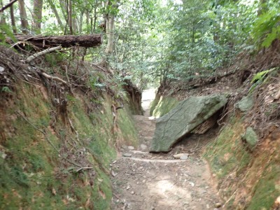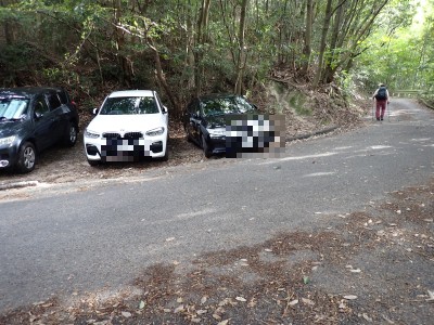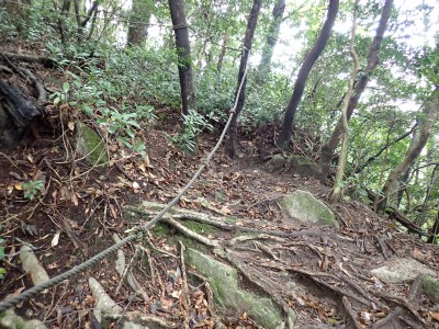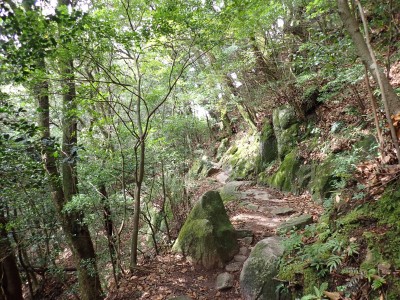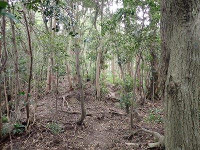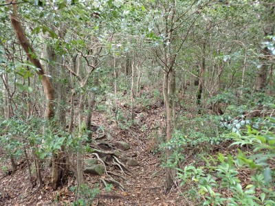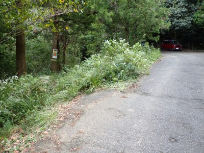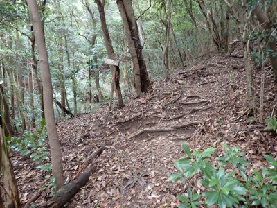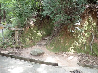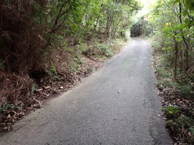 T字路にぶつかると左、有智山城跡方面へ(9:00) |