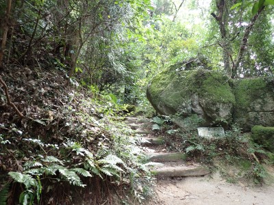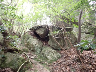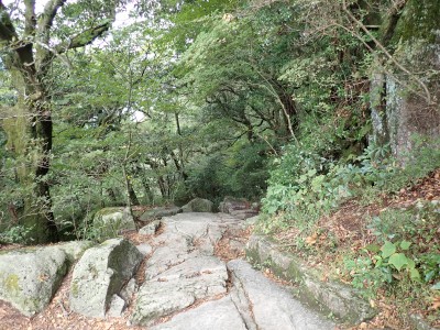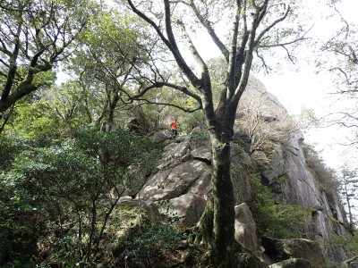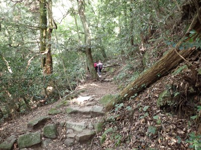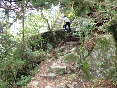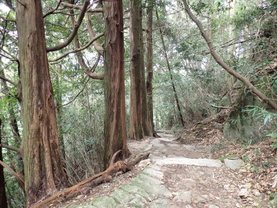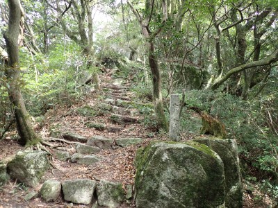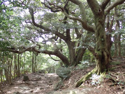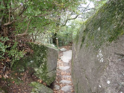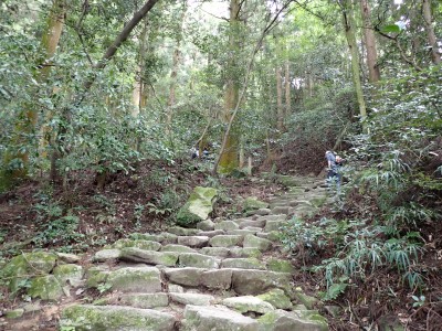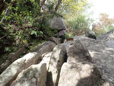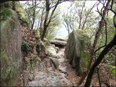 宝満山の正面登山道から歩くには、舗装された林道の数カ所に車を駐車するスペースがあるにはあるが、ハイカーがとても多い山なのですぐに満車になるようだ。そこで竈門神社の有料駐車場に停めることにした。ところが昔は停められた駐車場は「参拝者のみ。登山者はUターンして下の駐車場へ」と看板がある。ま、大した距離ではないので素直に下の駐車場に停める。料金は400円だ。16時に閉門するとのことだ。風が強く肌寒さを感じながら舗装道を歩き始める。山の図書館を横に見て九州自然歩道の大きな案内板があるのでここから登山道に入る。と言ってもすぐに舗装道に出て再び舗装道をしばらく歩き、舗装道が大きく右にカーブする場所に正式な登山口がある。ここから真っ直ぐな登山道が所謂正面登山道で復路はこの道を降ってくるが、次の舗装道に出ると左へとその舗装道(林道)を進み、途中からうさぎ道へと入り込む。道標がないので地図が頼りである。そこからT字路にぶつかったり脇道へと入ったりとわかりにくいが、地図を常に追っかけて行けば大丈夫だ。宇佐美新道の分岐からすぐにまた分岐が2ヶ所あるが、そこからは以前歩いた道となる。巨石が見えてくると頂上はすぐだ。頂上に着くとやはり多くの登山者がいて少々早いが隅っこでランチをとった。下山は正面登山道を降ったが、階段ばかりで結構膝にきたので本番は逆のルートで歩こうと決めた。今日も山に自然に感謝!!