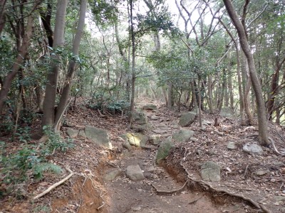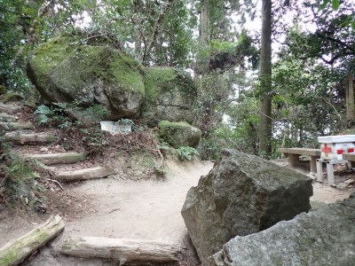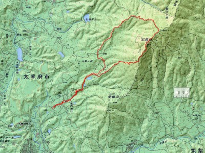 竈門神社WC-(17分)-登山口-(20分)-林道終点-(60分)-閼伽の井-(10分)-中宮跡-(25分)-山頂-(15分)縦走路分岐-(45分)-宇美新道分岐点-(50分)-(55分)-うさぎ道口-(15分)登山口-(10分)-竈門神社※竈門神社から有料駐車場までは5分程度。※休憩時間含まず。全行程で約6時間でした。